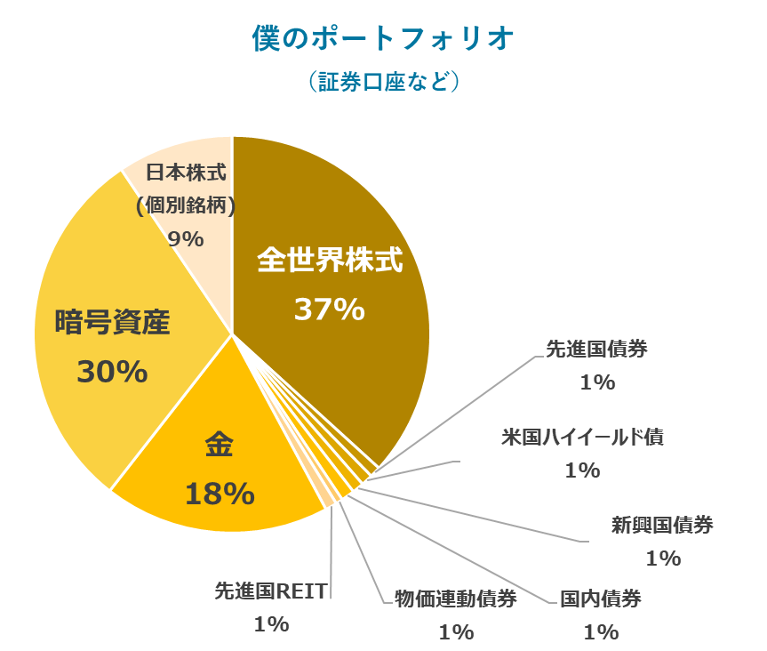 リスク分散の観点から、金や暗号資産などをサテライト資産として保有しています。