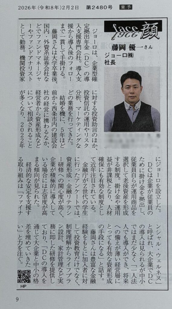 企業型DCを通じて、大企業と中小企業の格差を少しでも埋めたい。